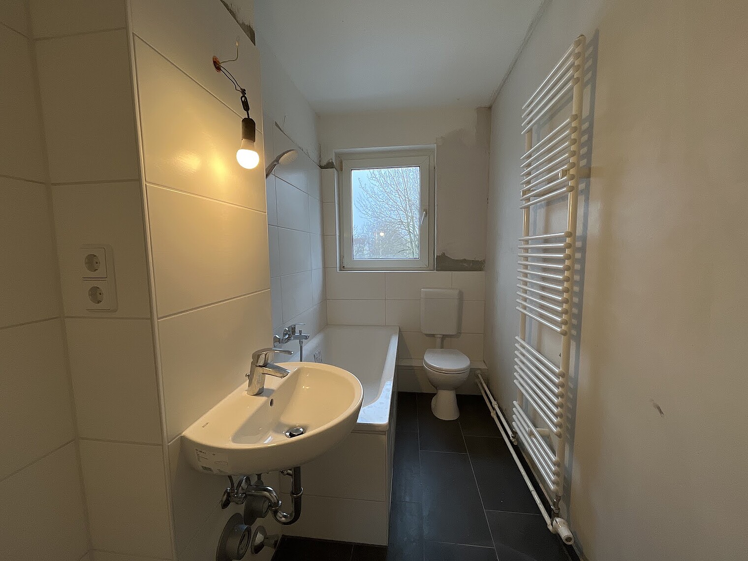 Bad mit Fenster, Badewanne eingefliest, Balkon/Loggia, Fern-/Zentralheizung, Fernwarmwasserversorgung