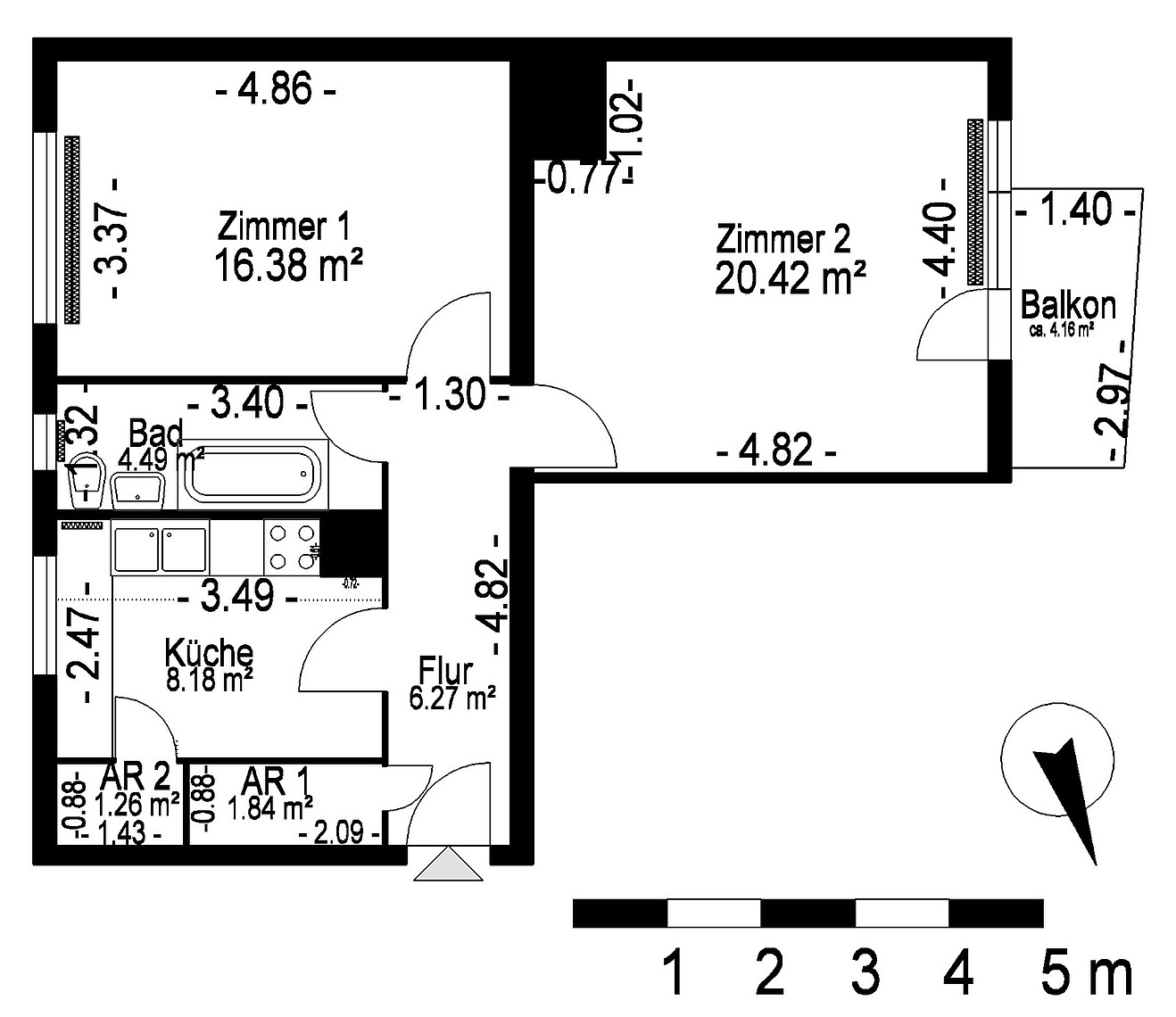 Wohnfläche 60,00 m²