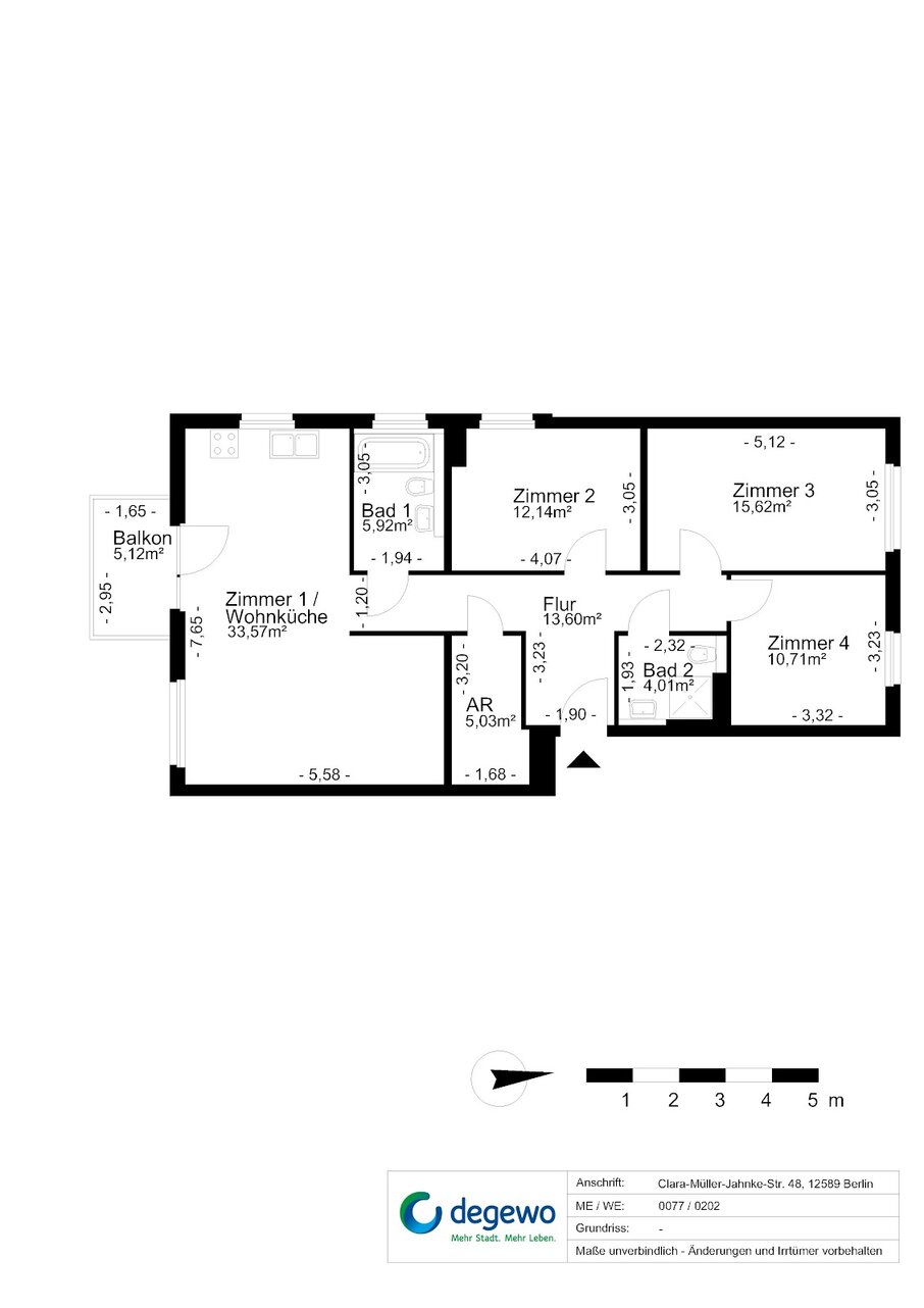 Diese großzügige 4‑Zimmer‑Wohnung in der Clara‑Müller‑Jahnke‑Straße 48 verbindet modernen Wohnkomfort mit einer ruhigen, familienfreundlichen Lage. Auf durchdacht geschnittenen Quadratmetern erwartet Sie ein helles, stilvolles Zuhause, das sowohl Paaren als auch Familien ein komfortables Wohngefühl bietet.Der offene Wohn‑ und Essbereich bildet das Herzstück der Wohnung. Große Fensterfronten sorgen für eine freundliche, lichtdurchflutete Atmosphäre und eröffnen den Blick ins Grüne. Die moderne Einbauküche fügt sich harmonisch in den Wohnbereich ein und bietet alles, was man für den Alltag und gesellige Kochabende benötigt.