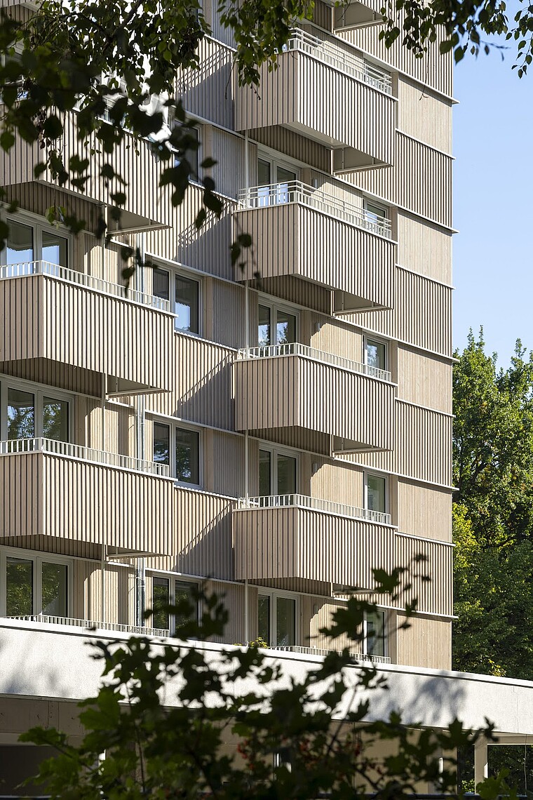Dieser energieeffiziente Neubau in Berlin Köpenick wurde in Holz-Hybrid-Bauweise errichtet. Es entstehen 112 Wohnungen in vier Aufgängen. Davon sind 77 Wohnungen barrierefrei und rund die Hälfte der Wohnungen werden vom Land Berlin gefördert. Alle Wohnungen sind mit einem Balkon und Fußbodenheizung ausgestattet. In jedem Aufgang befindet sich ein Aufzug. Das offene Erdgeschoss bietet Platz für ein Café, Stellplätze für Fahrräder.