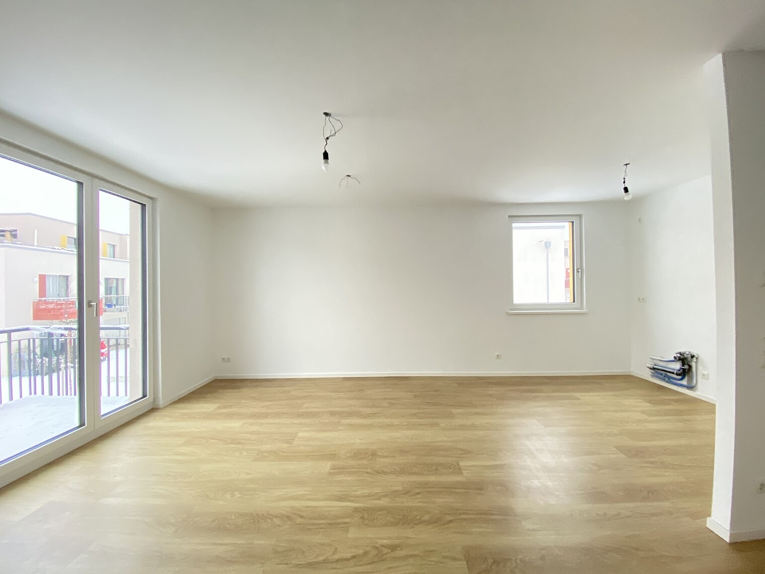 Der Wohn‑ und Essbereich bildet das Herzstück der Wohnung und bietet ausreichend Platz für individuelle Gestaltung. Große Fenster sorgen für viel Tageslicht und ein freundliches Raumgefühl. Zwei weitere Zimmer eignen sich flexibel als Schlafzimmer, Kinderzimmer oder Arbeitszimmer.