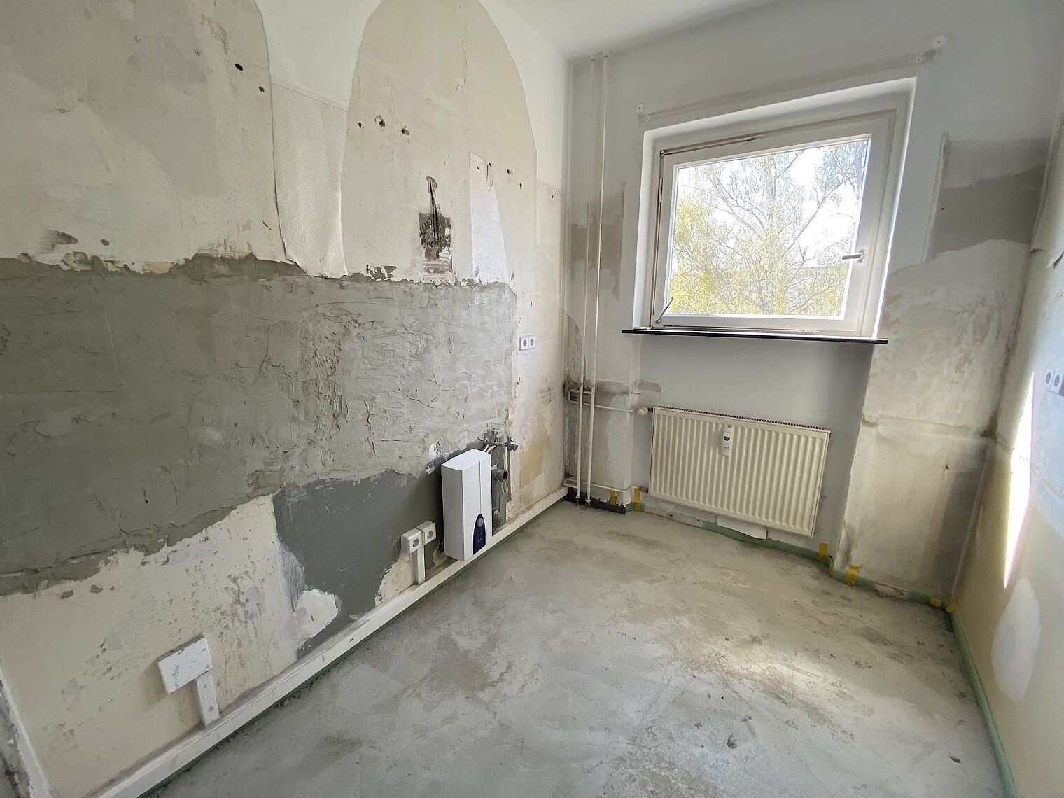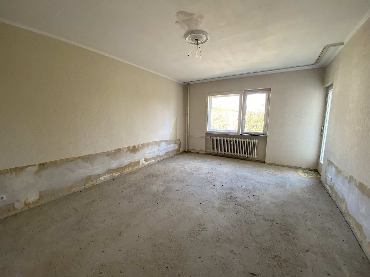 Bitte beachten Sie, dass die Wohnung über keinen Fußbodenbelag verfügt.