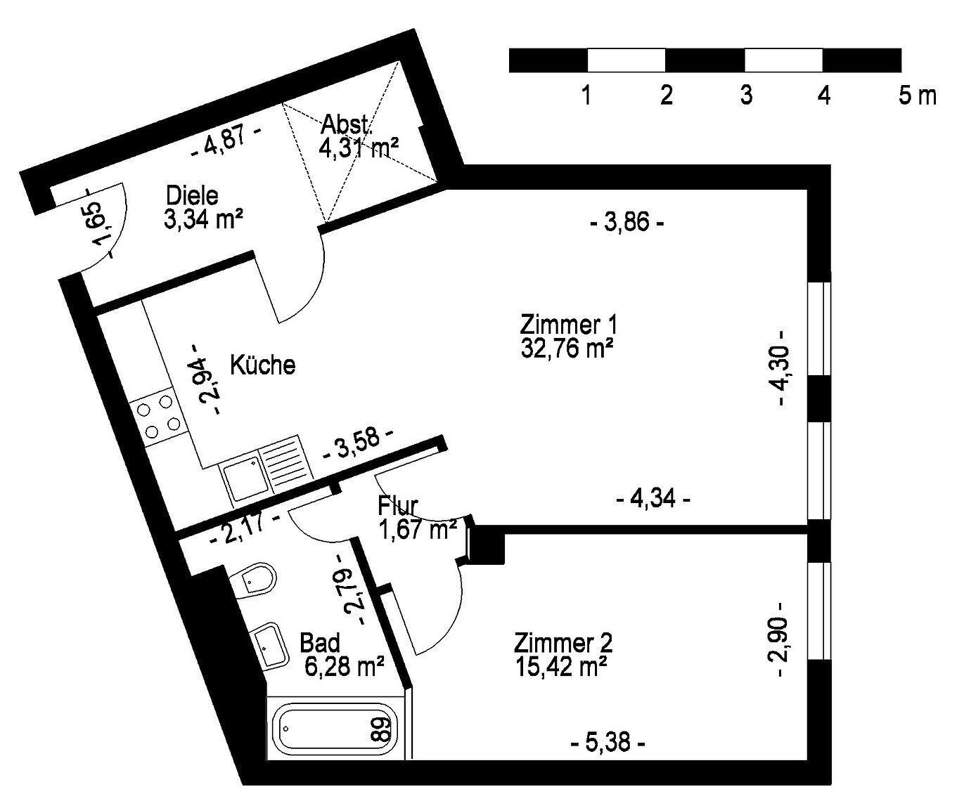 Der Grundriss vor Ort wurde dahingehend verändert, dass zwischen dem Küchenbereich und Zimmer 1 eine zusätzliche Wand mit Tür eingebaut wurde. Den tatsächlichen Zustand entnehmen Sie bitte den Fotos. Somit hat die Wohnung zwei separat zugängliche Zimmer.