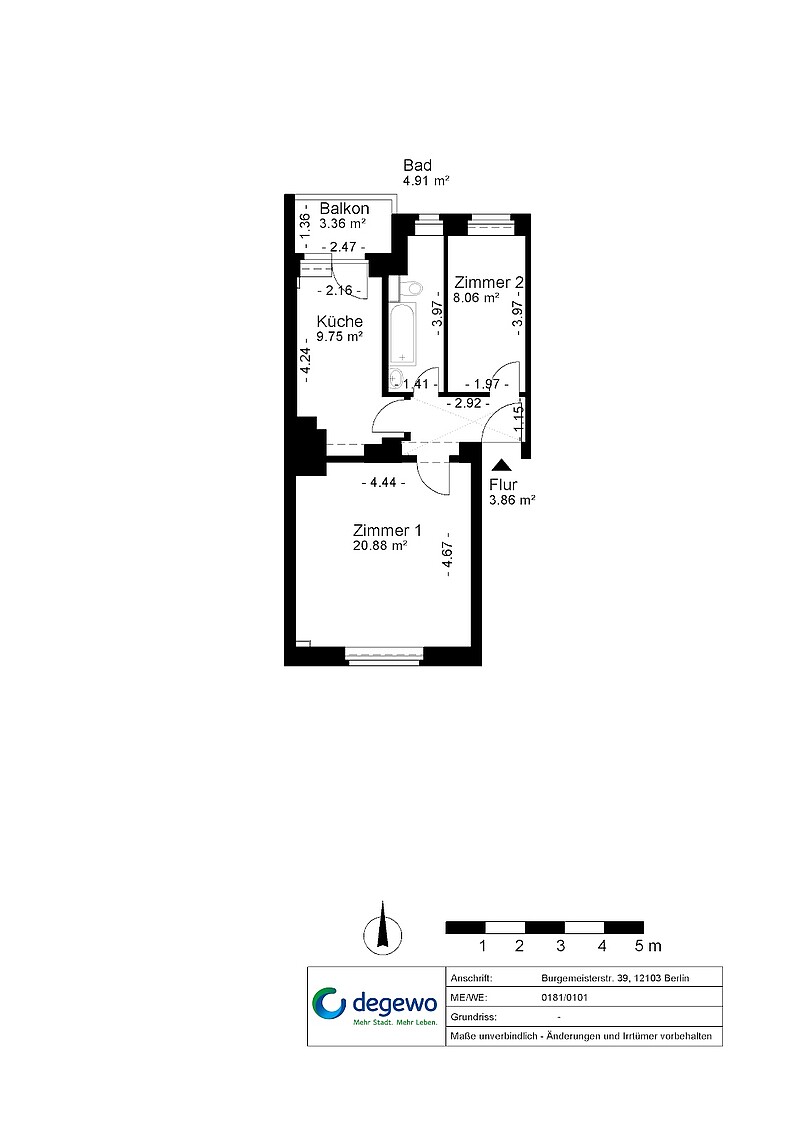 • Betriebskosten (warm)/m²: 1,97 €