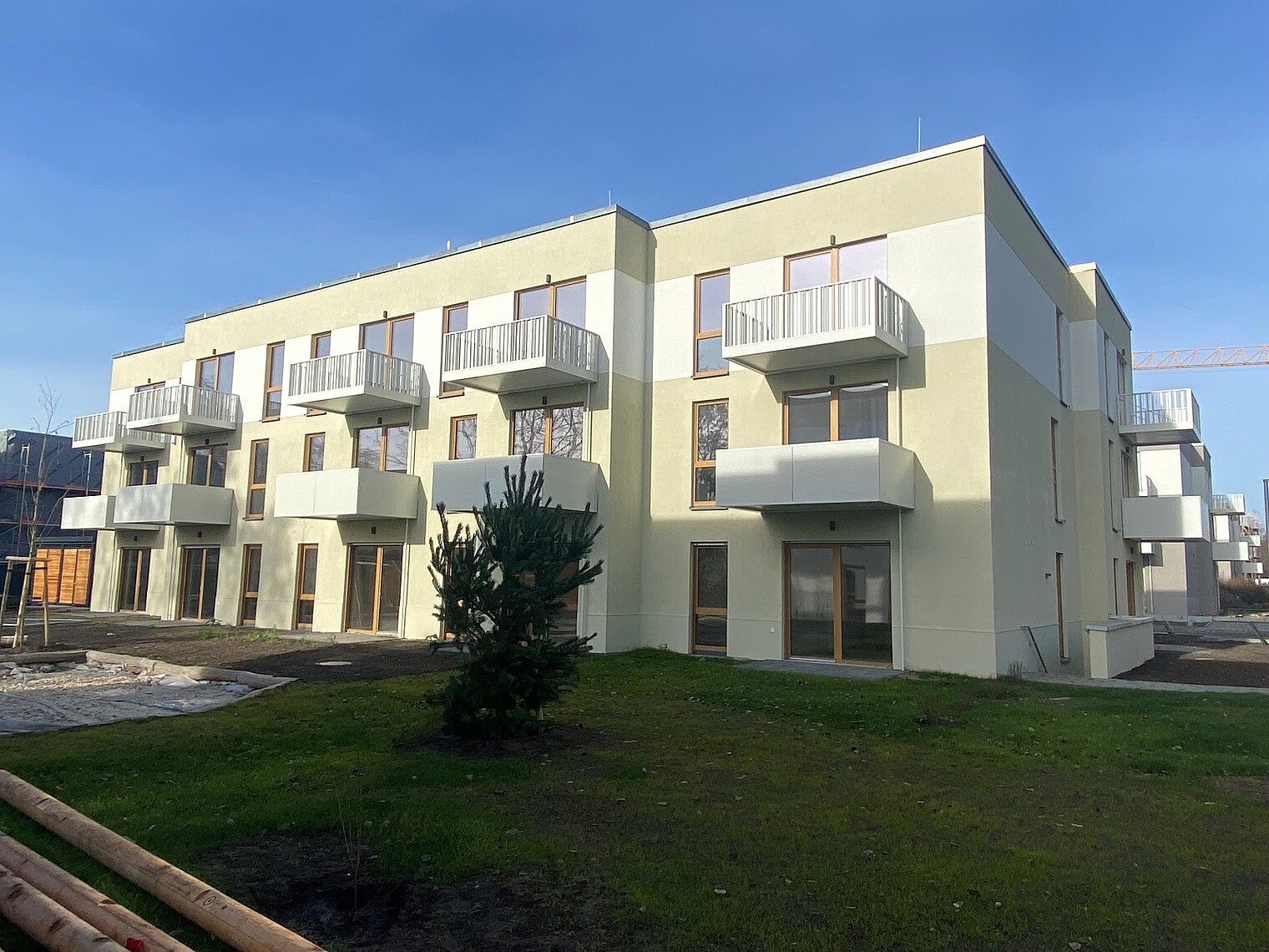 Im Neubauprojekt „Quartier der Vielfalt“ im Stadtteil Altglienicke entstehen insgesamt 420 Wohnungen in 28 Gebäuden für Familien, Paare, Singles und Senior*innen. Mehr als die Hälfte aller Wohnungen sind vom Land Berlin gefördert. 173 Wohnungen sind barrierefrei.