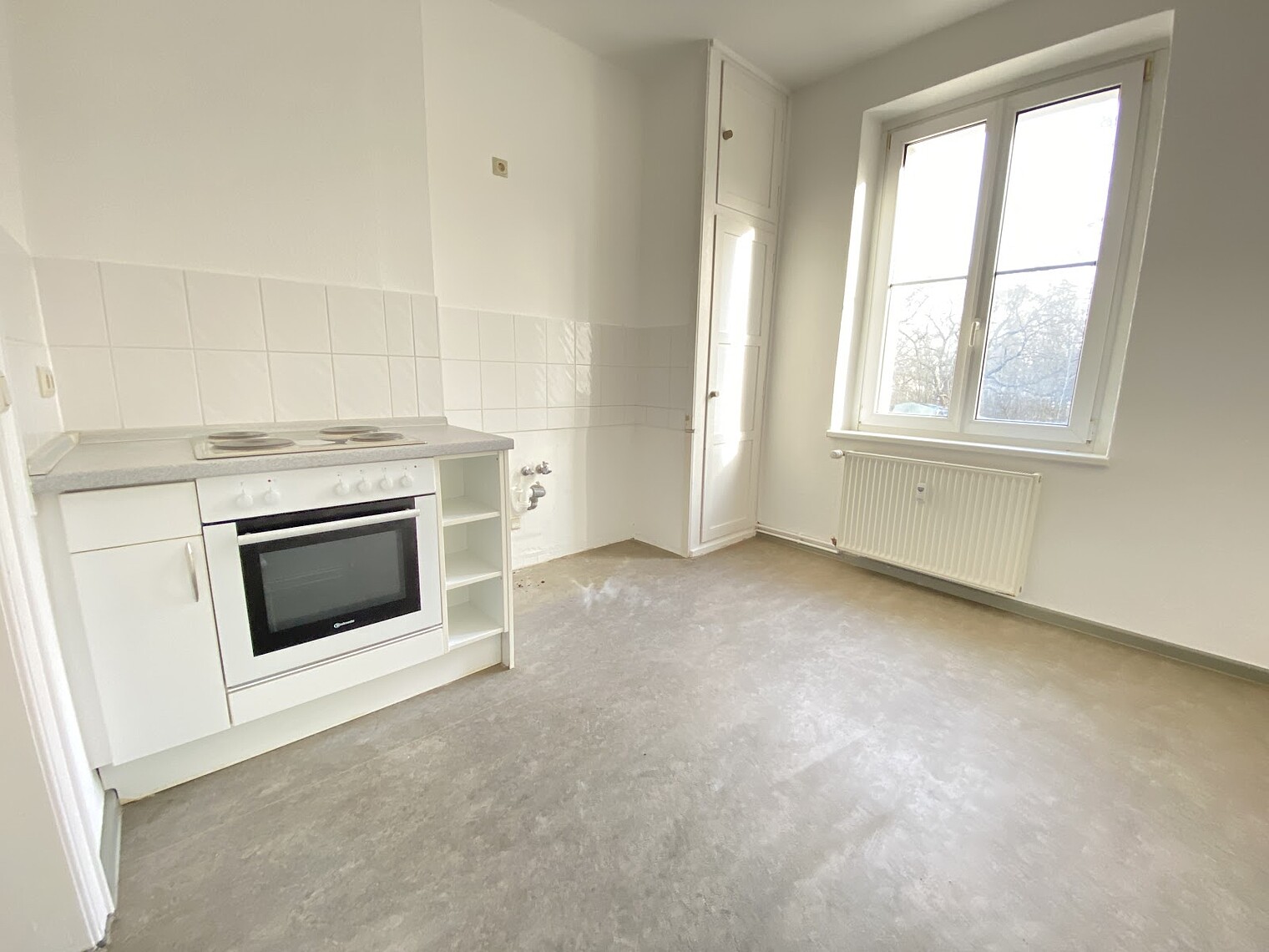 Bad mit Fenster, Badewanne eingefliest, Küchenmöblierung; Einbauküche; Kücheneinbaublock, EBK, Fern-/Zentralheizung, Fernwarmwasserversorgung