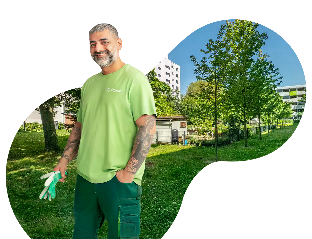 Als Gärtner bei der degewo Gebäudeservice GmbH verbringt Ömer seine Arbeitstage an der frischen Luft. Für ihn ist die körperliche Arbeit in der Natur der perfekte Ausgleich zum Leben in der Stadt. Bei der degewo Gebäudeservice GmbH genießt er neben der Arbeit als Gärtner besonders, dass er auf das Team und seine Vorgesetzten zählen kann – auch in schweren Zeiten.